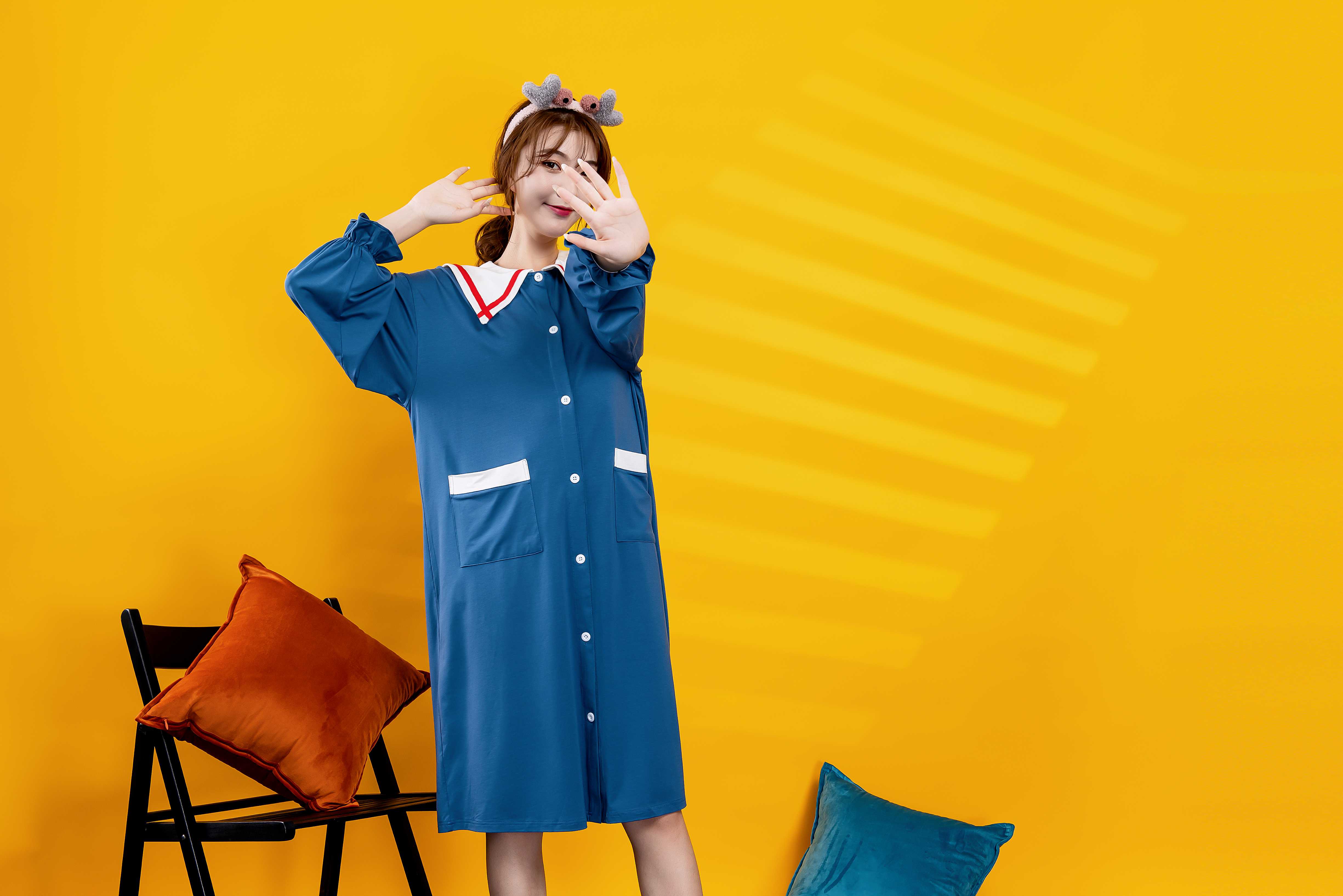 学院风的可爱袭击,减龄的海军领带着甜美气息,Hin有元气少女的甜趣活力; 注入可爱STYLE配你时尚脸,和一众路人甲拉开距离,宽松版型+削弱肩宽落肩袖,少女形象UPUP ! 弹力荷叶袖--在家的精致感,从小细节体现哦~ 2大流行色,散发萌主力量!