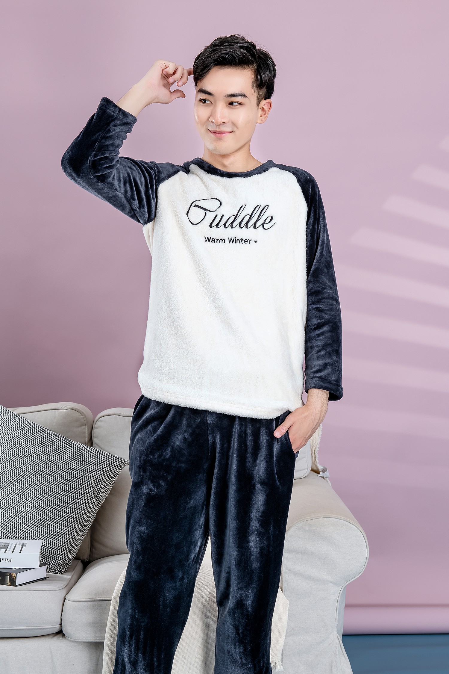 插肩袖撞色,深灰色男友感爆棚。秀恩爱有新招,向盟主学习情侣传搭经;此款高颜值亲子睡衣,穿上TA就是爱的证明。字母绣花元素格外惹眼,不怕让整个秋冬活力到底!
